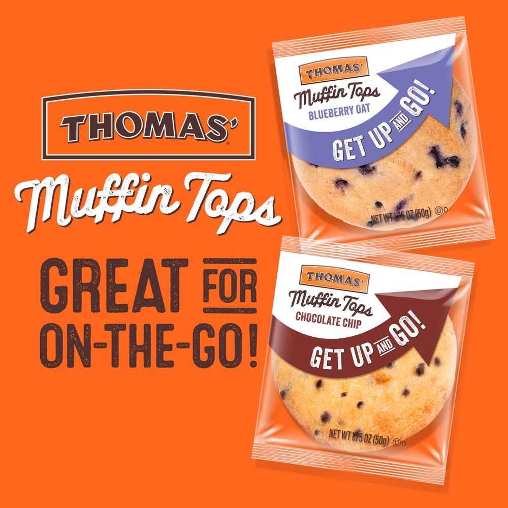 Thomas’ Muffin Tops are everyone’s favorite part of the muffin – just the top! Available in two flavors: Blueberry Oat and Chocolate Chip