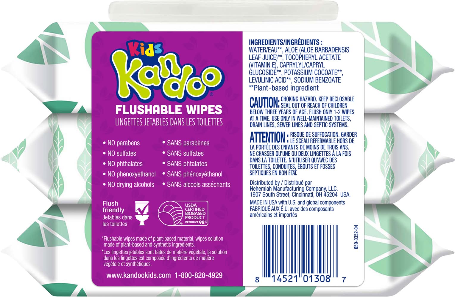 are fragrance-free and hypoallergenic, designed for gentle cleaning. These wipes are free from parabens, sulfates, phthalates, phenoxyethanol, and drying alcohols, ensuring a skin-friendly experience. With dimensions of hey offer a convenient size for personal care. Certified as a 98% USDA Biobased Product, they are flush-friendly and made in the USA with domestic and global components. • Size: 17.1 cm X 12 cm • Nehemiah Manufacturing Company, LLC., Cincinnati, OH, 45204