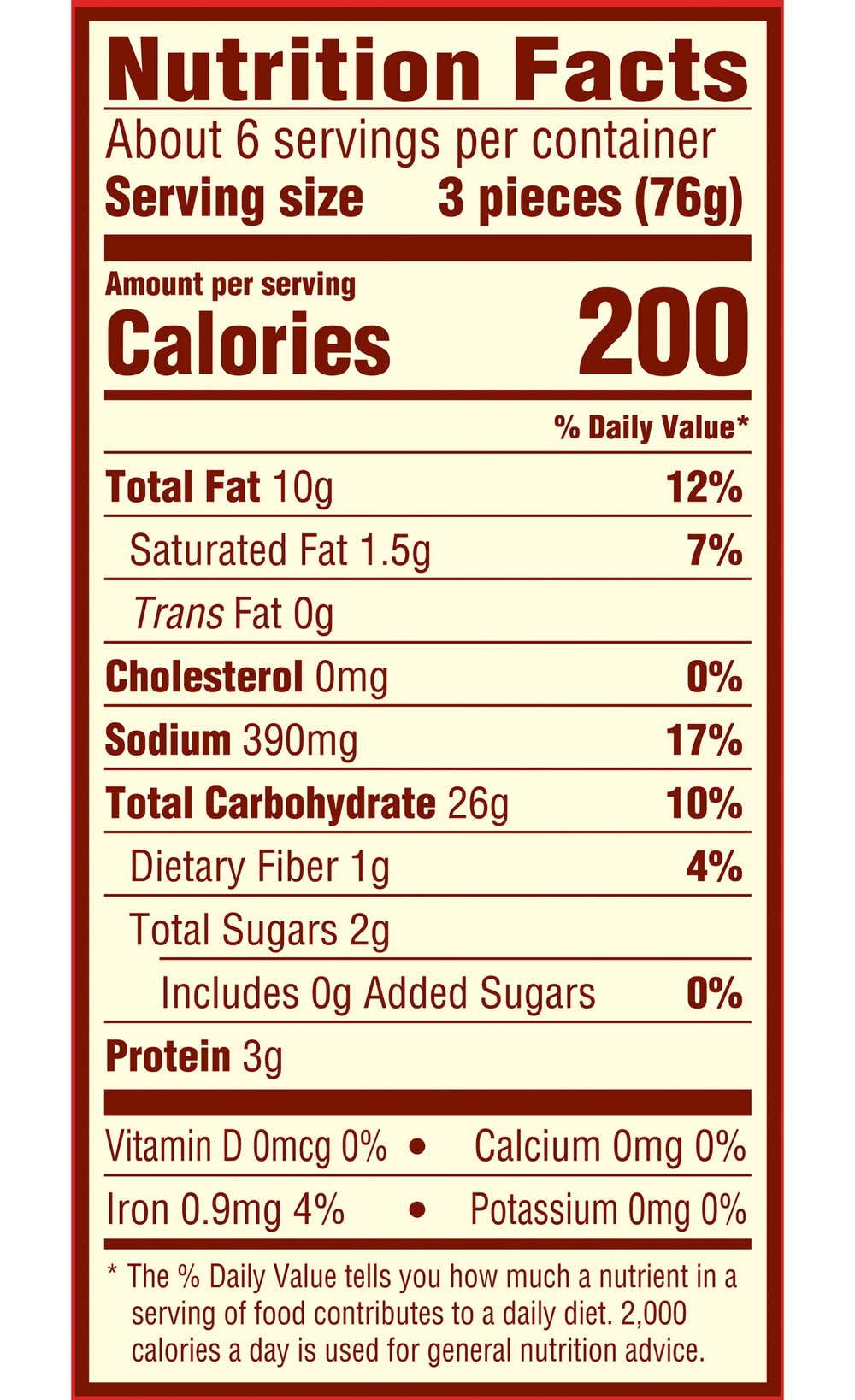 ONIONS, BLEACHED WHEAT FLOUR, ENRICHED WHEAT FLOUR (FLOUR, NIACIN, REDUCED IRON, THIAMINE MONONITRATE, RIBOFLAVIN, FOLIC ACID), SOYBEAN OIL, WATER, YELLOW CORN FLOUR, POTATO STARCH, CONTAINS LESS THAN 2% OF SALT, SUGAR, GARLIC POWDER, YEAST, ONION POWDER, NATURAL FLAVOR, CARAMEL COLOR, SPICE EXTRACTIVE, OLEORESIN OF PAPRIKA (COLOR). Contains: CONTAINS: WHEAT.