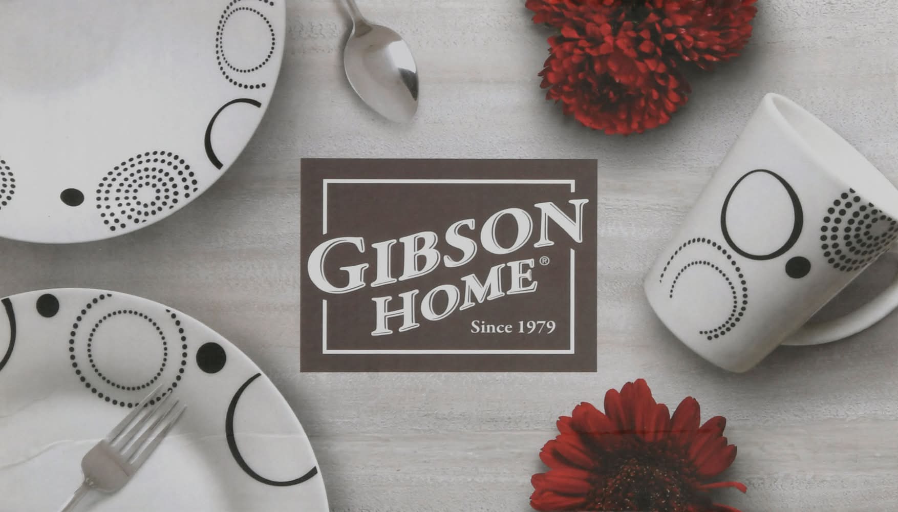 Since 1979. Includes 4 of each. 9 inches (26.6 cm) dinner plate. 7 inches (17, 7 cm) bowl. 9 oz (266 ml) mug. Dishwasher and microwave safe. Gibson home’s legacy is style and versatility. For generations we have delivered quality home products for everyday living as well as special occasions. Make your home a Gibson home. No duplication or reproduction of this product’s design, packaging, logos or transparencies may be used unless authorized in writing by Gibson Overseas, Inc. The above restrictions will be internationally enforced. gibsonusa.com. Facebook. Pinterest. Instagram. Twitter. Youtube. (at)GibsonHomeUSA. youtube.com/GibsonOverseas. Facebook.com/GibsonOverseas. Made in China. • Alcohol by volume: 0% • Gibson Overseas Inc.,
