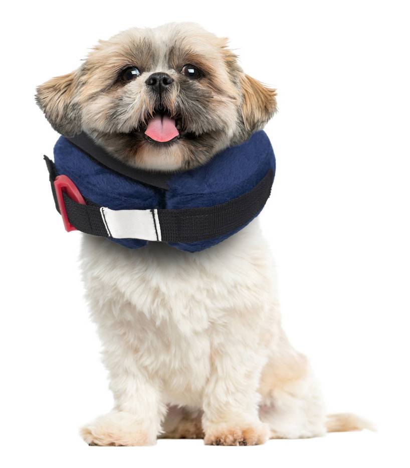 Easier on your pets neck than a traditional plastic cone Allows pet to eat and drink Fits neck circumference from 6 - 10 The collar comes with the Calm Paws Calming Disk that can be secured on the collar strap. Size: S