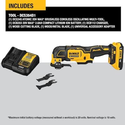 This 20V MAX* brushless cordless oscillating multi-tool kit includes a universal accessory adaptor and two wood cutting blades to help get your project started. The Quick-Change accessory system allows you to change blades quickly and easily, and with the universal accessory adaptor, it's compatible with most oscillating tool accessories. The DUAL-GRIP variable speed trigger provides ultimate speed and application control. The bright LED light illuminates dark work spaces. This kit includes a universal accessory adaptor, (2) blades, (1) DCB203 battery, and (1) DCB112 charger. Tool guide system sold separately.