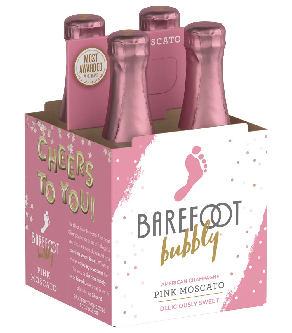 Barefoot Wine Bubbly Pink Moscato American Champagne Sparkling Wine (4 x 187 ml)