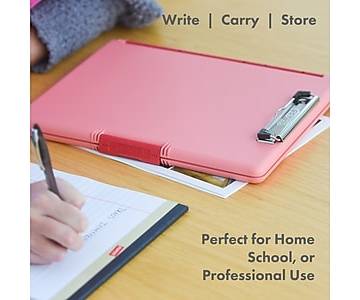 Introducing the Dexas International Slimcase 2 clipboard with storage and side opening, a perfect solution for streamlined organization and efficient storage on the go. Whether you're a student, teacher, professional, nurse or tradesperson, this versatile clipboard accommodates all your needs. Crafted with a sleek and slim design, this portable clipboard combines style and functionality seamlessly. The durable plastic construction ensures longevity, making this clipboard a reliable companion for daily use in various settings, from school to the office and even the field. Equipped with a convenient side opening, this clipboard offers ample storage space for all your essential office supplies, including pens, pencils, field notes, and documents. Say goodbye to cluttered desks and disorganized bags: with the Dexas Slimcase 2 clipboard with storage, everything stays neatly organized and easily accessible. Great for use in home offices, classrooms, workshops, or on the job site, this clipboard serves as a versatile tool for professionals in every field. Whether you're a nurse needing a reliable nursing clipboard or a student juggling multiple assignments, this clipboard organizer has you covered. Say hello to an efficient organization wherever you go. - Experience the perfect blend of style and functionality with this clipboard with storage, making a perfect addition to your collection of office supplies - Measures 9.5 x 12.5 and is designed to hold standard notebook paper - Made of high-impact, break-resistant plastic to protect contents and last for years; comes in one of two assorted colors: blue or pink - Boasts an impressive amount of interior storage space in a slim design - Storage compartment latches closed securely, making it perfect for organizing and protecting contents from weather, spills, and more - Durable plastic construction ensures longevity, making this clipboard a reliable companion for daily use in various settings, from school to the office and even the field - Proudly made in the USA