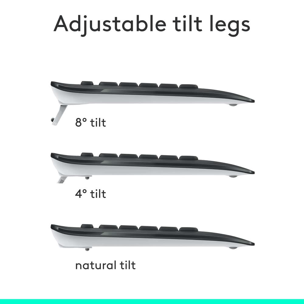 MK540 Advanced is an instantly familiar wireless keyboard and mouse combo built for precision, comfort and reliability. The full-size keyboard features a familiar key shape, size, and feeling - optimized for precision and noise reduction. The palmrest and adjustable tilt legs keep you comfortable for long stretches and the contoured mouse is designed to fit perfectly into either palm. Plug and play your keyboard and mouse with one tiny USB receiver with Logitech Unifying™ technology. You’ll get a reliable - and encrypted - wireless connection up to 10 meters away with virtually no delays or dropouts. Wireless range may vary due to environmental and computing conditions. Precision Typing: An instantly familiar experience, type with ease and comfort on this full-size wireless keyboard, featuring reduced noise, palm rest, spill-resistant design, adjustable tilt legs. Tested under limited conditions (maximum of 60 ml liquid spillage). Do not immerse keyboard in liquid. Built For Comfort: The sleek combo's wireless mouse features an ambidextrous shape and soft rubber side grips that fit comfortably in your palm, as well as enhanced tracking and precise cursor control. Customized Control: Enhanced productivity at your fingertips, the computer keyboard comes built with convenient, essential hotkeys providing direct access to media, calculator, battery check functions. Wireless Freedom: Plug-and-play your keyboard and mouse with the mini Logitech Unifying USB receiver, for a reliable wireless connection up to 33 ft away from your PC or laptop. Wireless range may vary based on user, environmental and computing conditions. Compatibility: This Logitech mouse keyboard combo is compatible with Windows 10 or later, Windows 8, Windows 7, Chrome OS Upgrade to Logitech MK850 Combo: Improve productivity with the multi-device MK850 Keyboard and Mouse Combo, with Bluetooth/USB, padded palm rest, sculpted mouse, hyper-fast scrolling, customization. Long-Lasting Autonomy: The wire Color: Black