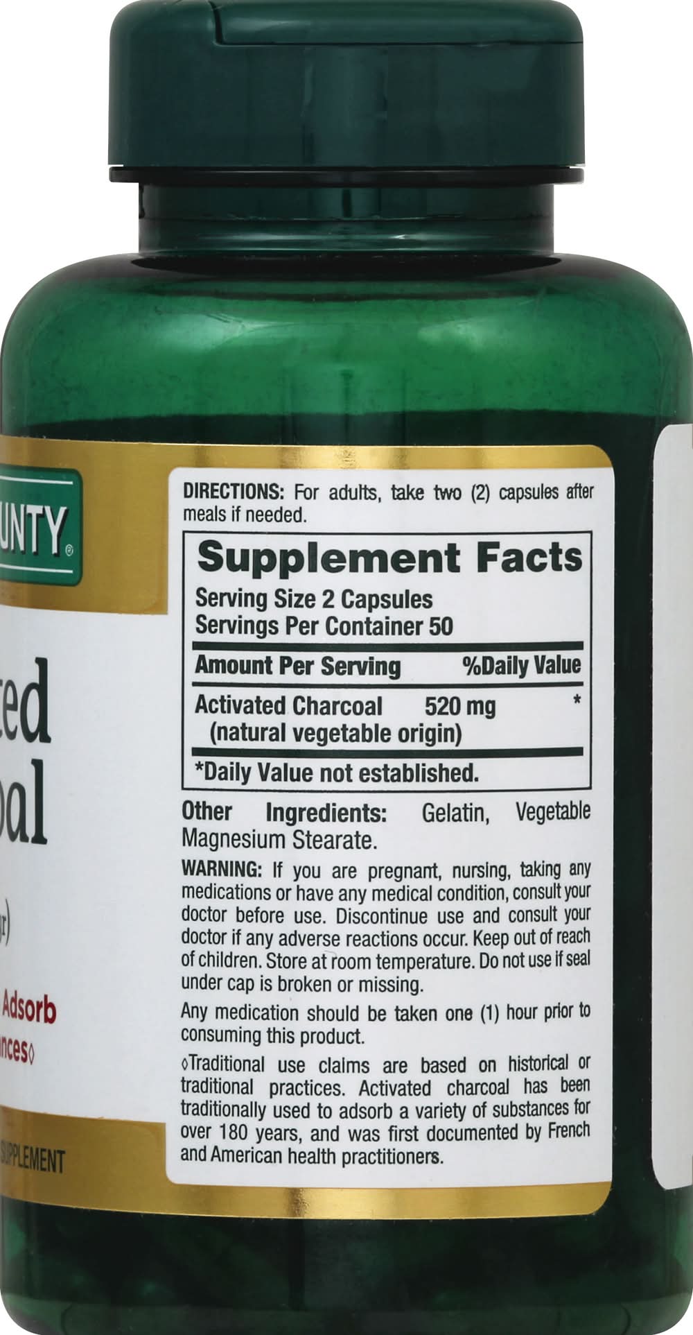 Nature's Bounty Activated Charcoal Capsules 260 mg (100 ct)