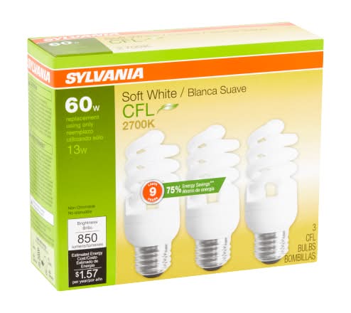 Sylvania Fluorescent Soft White Cfl 2700k 60w Bulbs (3 ct)
