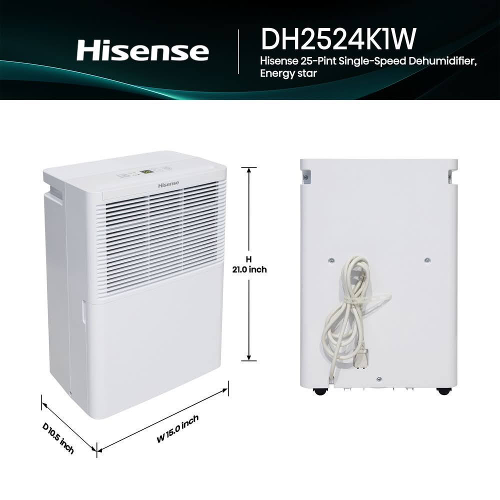 Your Hisense 25 Pt 1500 Sq ft Dehumidifier delivery options may vary depending on where you are in a city. Enter your address to browse Hisense 25 Pt 1500 Sq ft Dehumidifier delivery options near you.