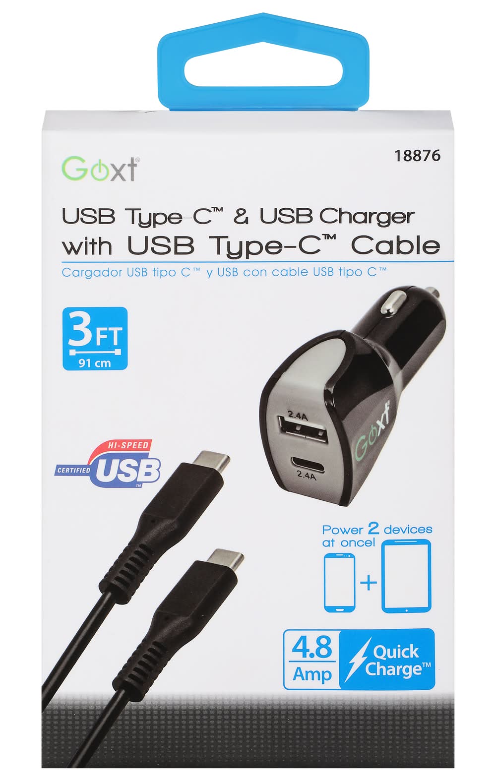 Goxt 3 Ft Usb Type-C & Usb Charger With Usb Type-C Cable