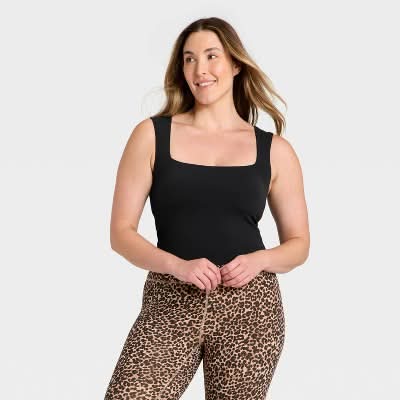 All In Motion Everyday Soft Feminine Square Neck Tank Top, Women, S, Black