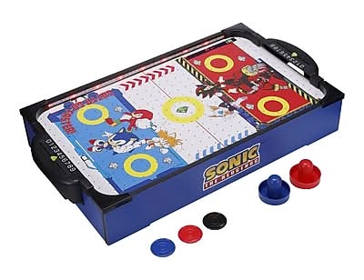 Race to Victory with the Sonic Light-Up Air Hockey Table Level up your game room with the Sonic Light-Up Air Hockey set. Featuring an exciting Sonic the Hedgehog theme and dynamic LED lighting, this set comes with two strikers and three pucks for nonstop action. Easy to set up and powered by 3 AA batteries (not included), it’s the perfect way to bring arcade-style fun home. - Sonic the Hedgehog Theme – Bold graphics bring your favorite video game character to life - Light-Up Air Hockey Action – Illuminated playfield amps up the excitement - Includes 2 Strikers and 3 Pucks – Everything you need for fast-paced fun - Battery Powered – Requires 3 AA batteries (not included) for light-up features - Easy to Set Up – Quick assembly means more time for gameplay