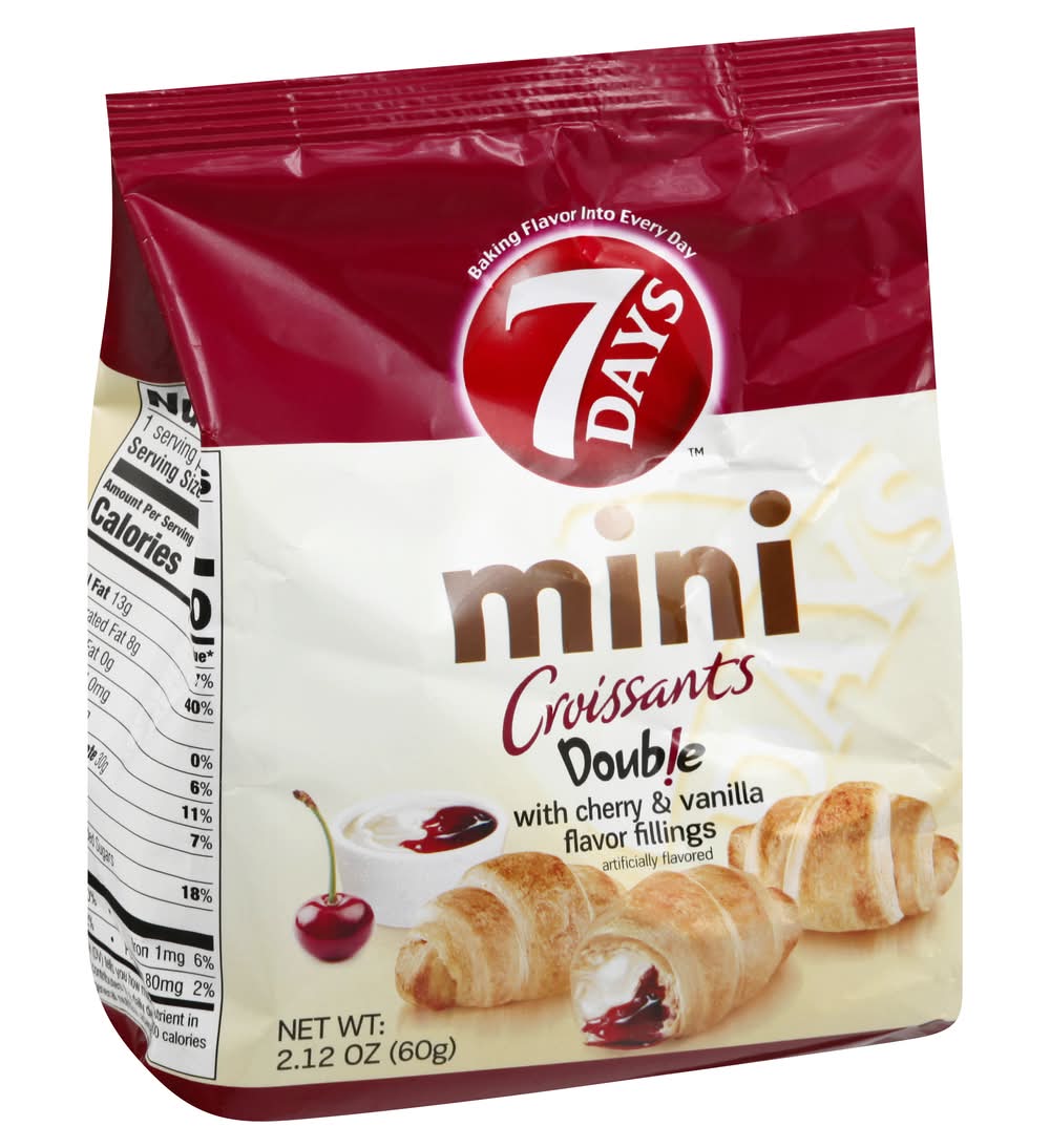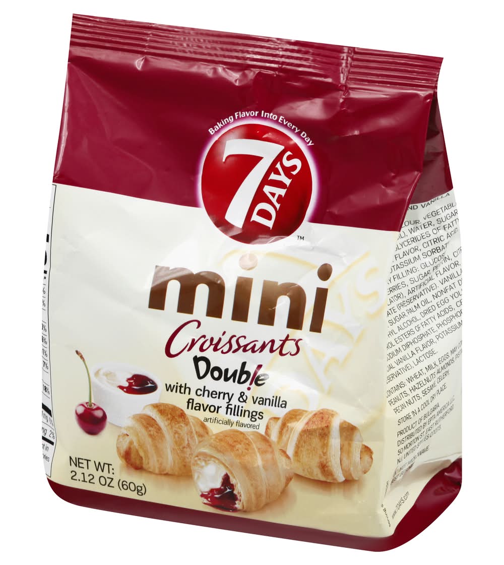 Croissants, with Cherry & Vanilla Flavor Fillings, Double, Mini • Brand: 7days • Number of servings: 1