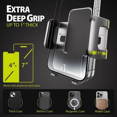 Experience the epitome of hands-free driving. Engineered for your safety and convenience, this best-selling phone holder mount ensures unshakeable stability across all driving conditions. Its fully adjustable view guarantees the perfect angle for your device, with an easy one-button release that extends its arms up to 3.5 inches. Whether you have a smartphone with or without a case or a GPS device up to 5 inches, the TripGrip XT has you covered. With its Extend 360 Base, you can securely mount it to your windshield or dashboard, and the 360° rotation feature lets you switch effortlessly between portrait and landscape views. Thanks to the innovative Temberbond suction grip technology, this mount boasts an ultra-sticky, multi-layer suction cup design that remains reliable even after washing. Plus, it's heat-resistant and reusable, ensuring your device stays securely in place no matter the conditions. Drive confidently and hands-free with the TripGrip XT by your side.