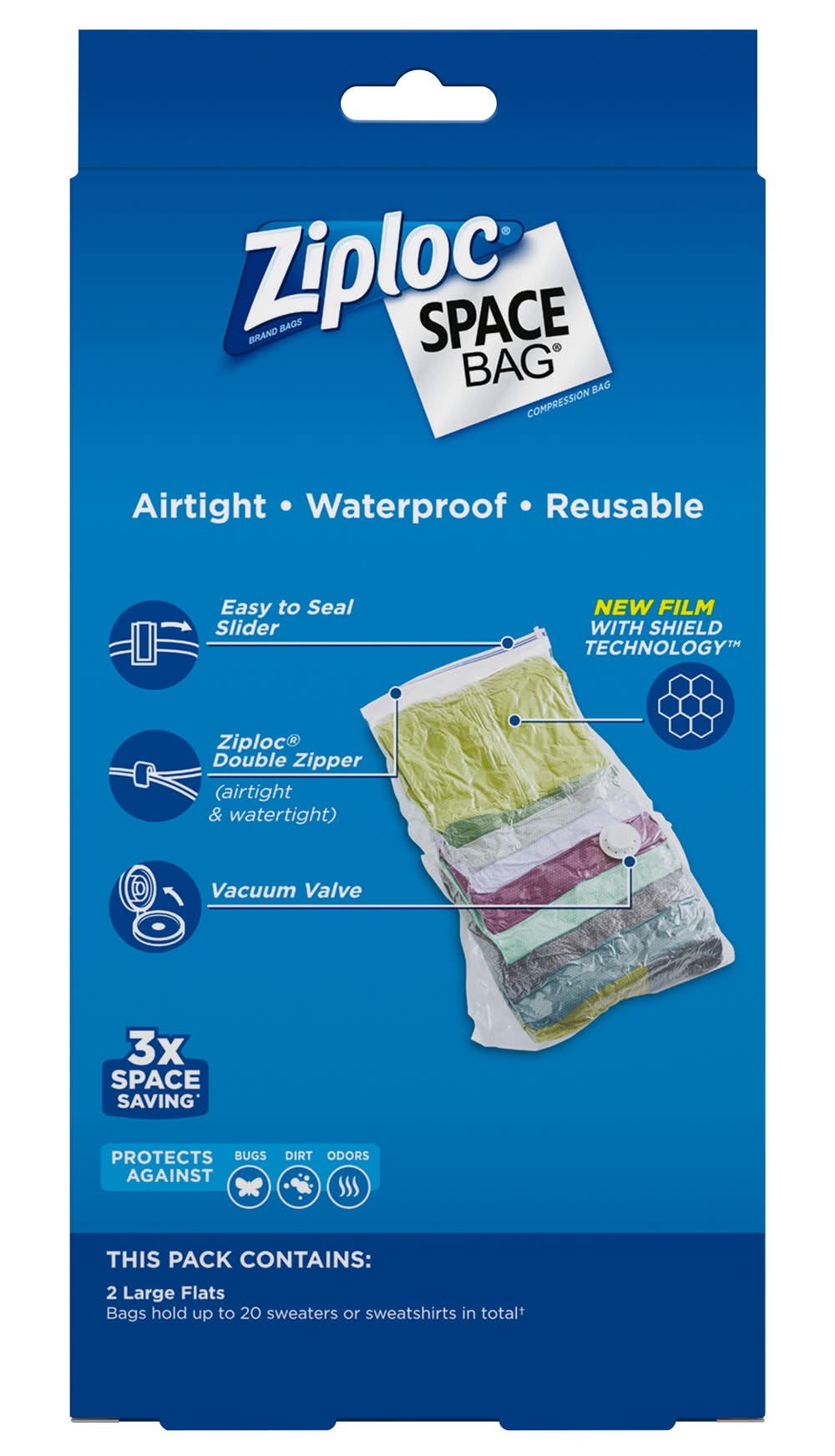 Ziploc Space Bag Clothing Compression Bag, 55 cm x 75 cm (2 ct)