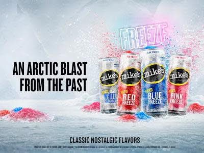 Mike’s Hard Freeze tastes like your favorite slushy flavors. Try all four refreshing throwback flavors: Blue, Red, White, and Pink Freeze. It's all the flavor without the brain freeze! Mike’s Hard Freeze is a collection of indulgent flavors inspired by nostalgic classics. Mike’s Hard Red Freeze tastes just like the classic red slushie flavor you remember, now liquified. The perfectly balanced sweetness and tartness makes Mike’s Hard Red Freeze super refreshing and sessionable. Mike’s Hard Lemonade is the original. Always has been. Always will be. For more information about our beverages, please visit mikeshard.com. Cheers! – Mike • Alcohol by volume: 5% • Mike's Hard Lemonade Co.,