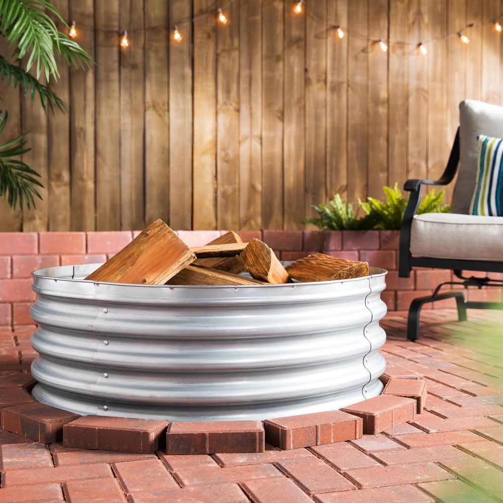 Style Selections Galvanized Fire Ring, 36 in, Silver