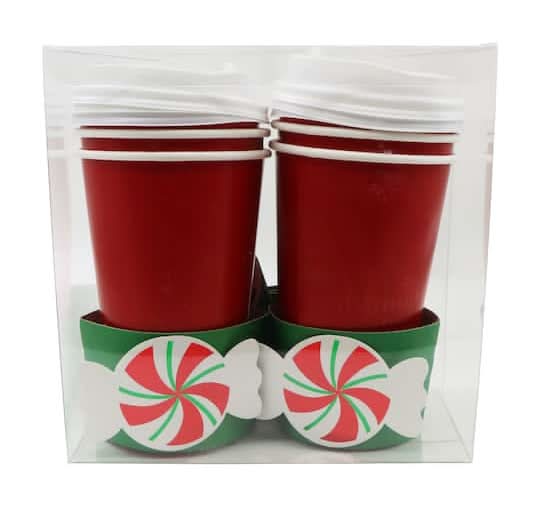 Serve hot cocoa, wassail, coffee or any other warm beverages to guests and family for a Christmas dinner or party with this Featuring drink sleeves and secure tops, you can sip a tasty drink while you socialize and enjoy the excitement of the season. Multicolor. 16 oz. Paper and foil. 6 cups6 drink sleeves. 6 drink sleeves6 lids