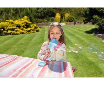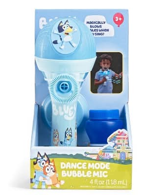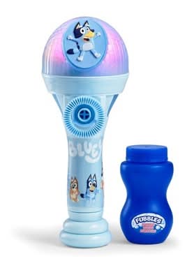 Get ready to sing, bubble and dance with the Bluey Dance Mode Bubble Mic! Featuring fun voice-activated bubble, it magically lights up and blows streams of bubbles when you sing!