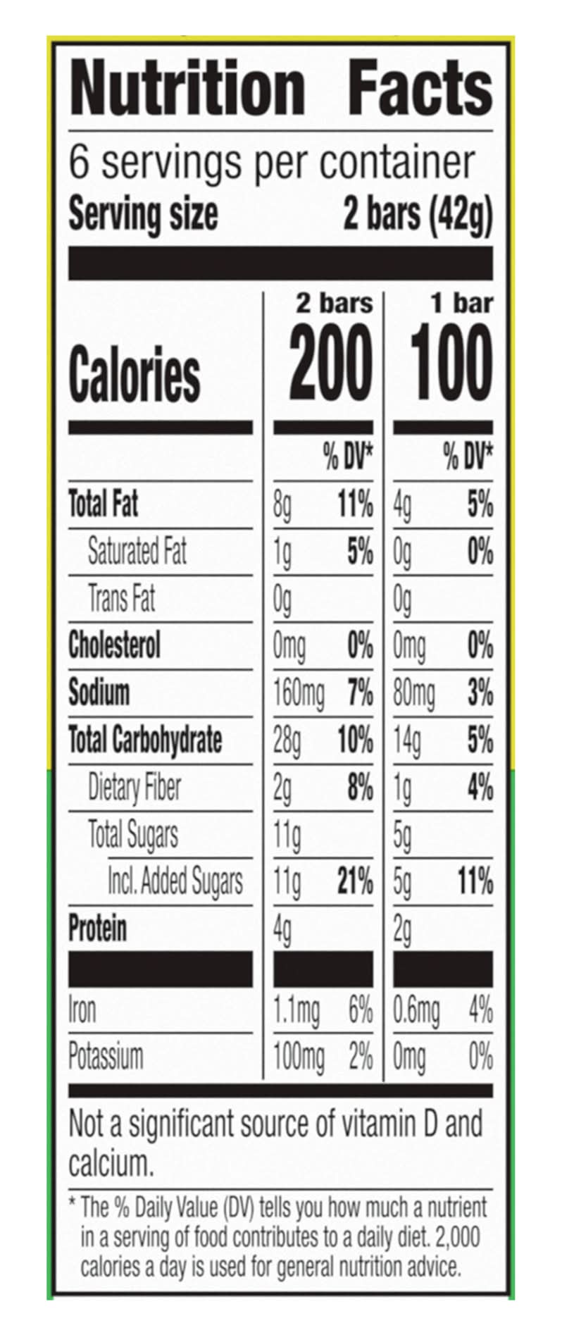 Ingredients: Whole Grain Oats, Sugar, Canola and/or Sunflower Oil, Peanut Butter (Peanuts, Salt), Rice Flour, Brown Sugar Syrup, Salt, Baking Soda, Soy Lecithin Contains: Peanuts, Soybeans, Tree Nuts, Almonds, Tree Nuts, Pecans