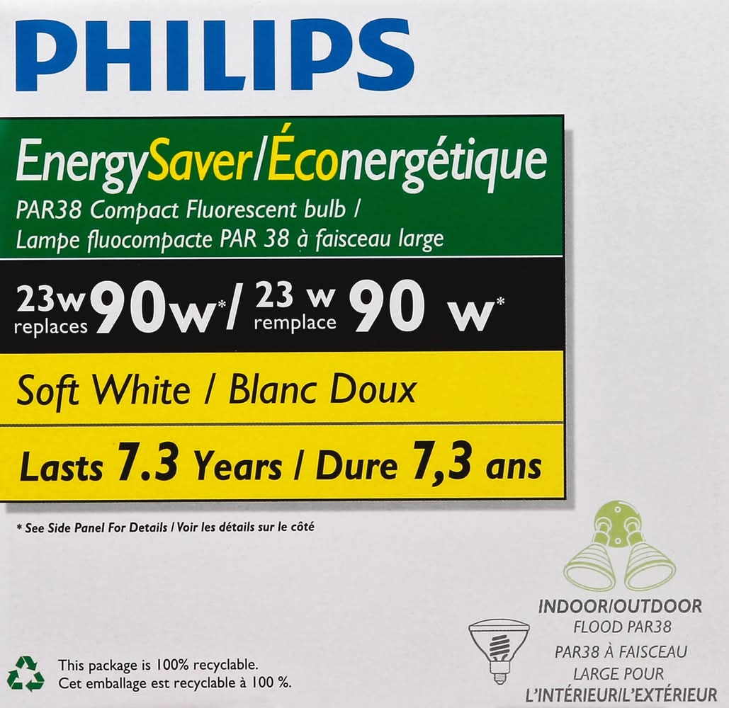 Light Bulb, Compact Fluorescent, Flood, Soft White, 23 Watts PHILIPS,