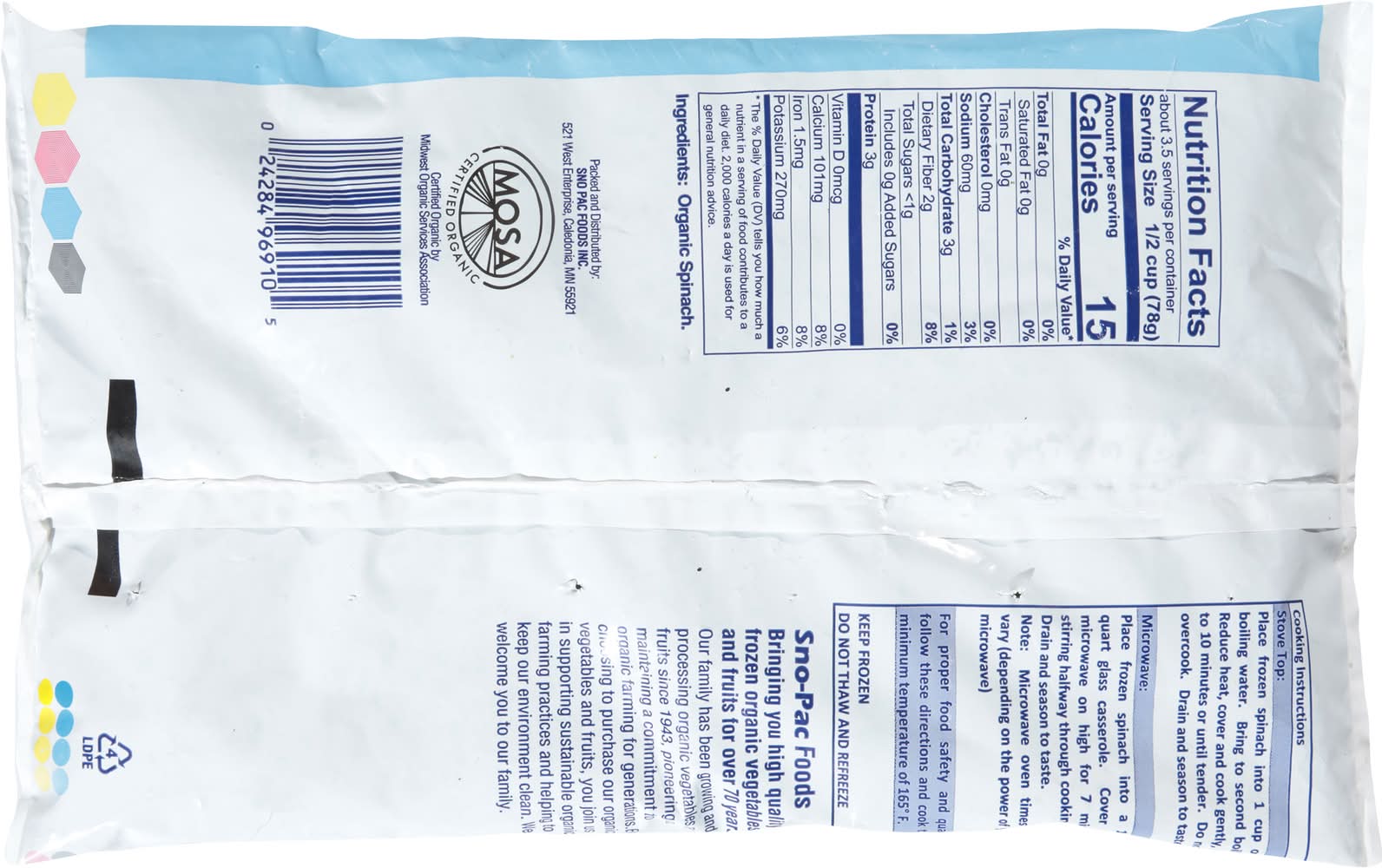 Sno Pac Foods Organic Cut Spinach (10 oz)