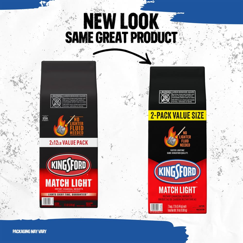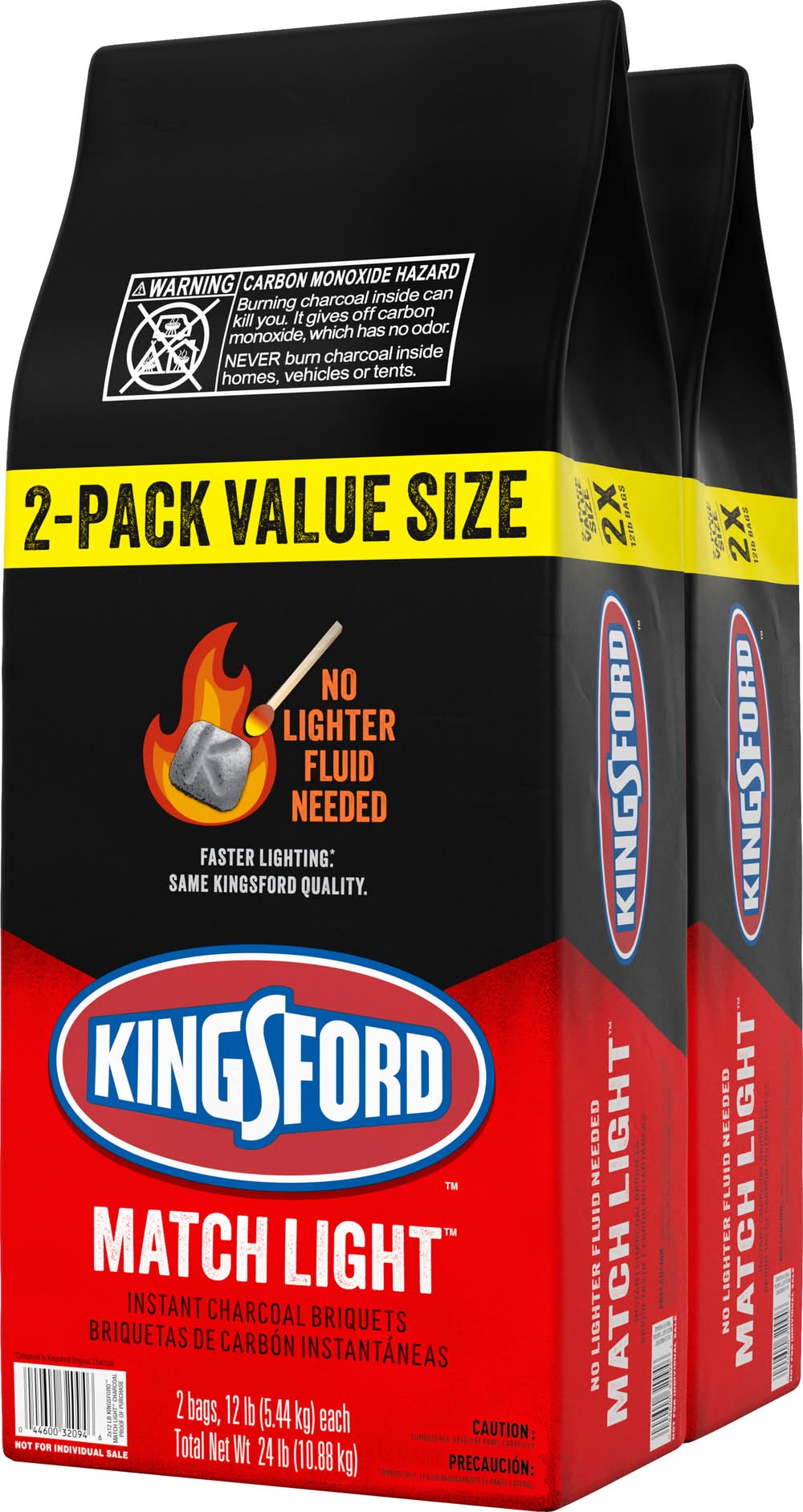 No lighter fluid needed. Lights every time guaranteed*. Ready in about 10 minutes. NO LIGHTER FLUID NEEDED: Made with high quality ingredients and real wood, these charcoal briquettes for grilling light with just a match, no lighter fluid needed; packaging may vary. LIGHTS EVERY TIME GUARANTEED*: Make grilling easy with Kingsford’s fastest lighting charcoal, guaranteed to light every time* and ready in about 10 minutes. MADE IN USA WITH NORTH AMERICAN INGREDIENTS: Kin From backyard grilling to away-from home outings, Kingsford Match Light is the go-to BBQ charcoal for your next cookout. SMOKY BBQ FLAVOR: Infuse smoky, wood-fired flavor into beef, chicken, pork, fish, veggies and more with these fast lighting charcoal briquettes for an authentic BBQ experience. BRINGS PEOPLE TOGETHER: Whether tailgating with friends or barbecuing in your backyard with family, make Kingsford a part of your grilling tradition. For CA Residents Only: WARNING: This product can expose you to chemicals including Lead which are known to the State of California to cause cancer and birth defects or other reproductive harm. For more information go to www.P65Warnings.ca.gov. Packaging: Reusable