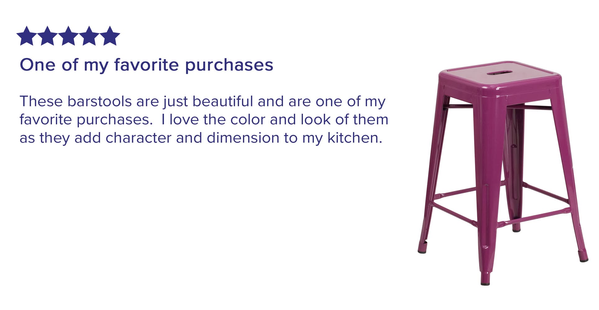 Flash Furniture Commercial Grade High Backless Indoor Outdoor Counter Height Stool, 24 in, Purple