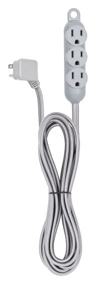 Globe Electric Designer Series 3 Outlet Extension Cable, 12 ft, Grey
