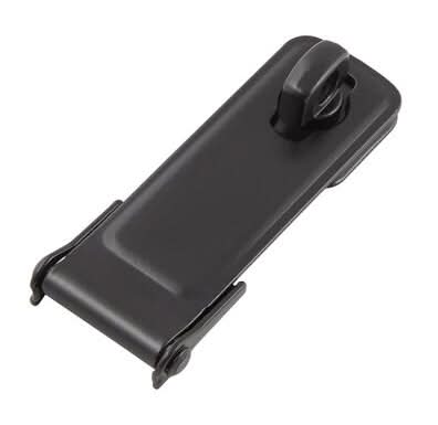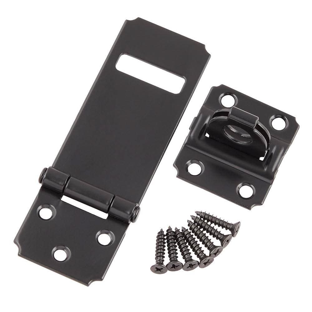 The Everbilt 4-1/2 in. Rotating Post Safety Hasp is ideal for doors, cabinets and gates. The hold open feature limits the swinging of the leaf while the post rotates to resist forced entry. Easy to install. Cancer and Reproductive Harm - https://www.p65warnings.ca.gov/ • Color: Black • Size: 4 1/2 in