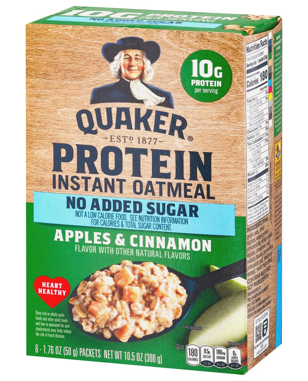 Quaker Protein Instant Oatmeal, Apple & Cinnamon (6 x 1.76 oz)