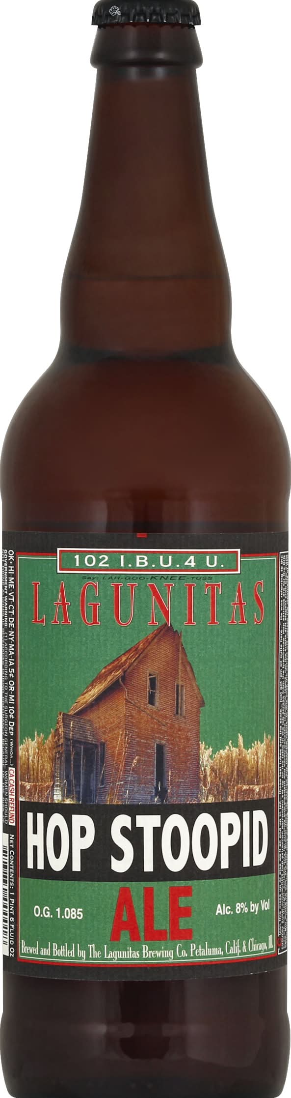 Beer, Hop Stoopid Ale • Alcohol by volume: 8% • LAGUNITAS BREWING,