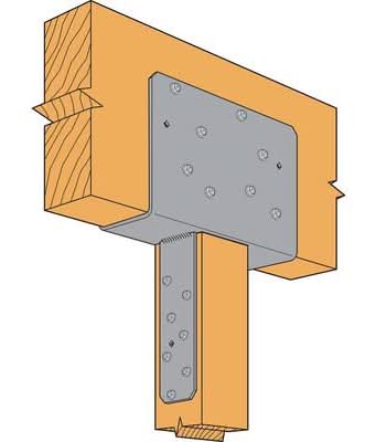 The CCQ is designed to provide strong column-beam connections in wood construction. The seat of the column cap provides an additional surface area of bearing that extends beyond each side of the column. The extended bearing surface helps distribute the load from the beam and provide support for the connection. The CCQ uses Strong-Drive SDS Heavy-Duty Connector screws for fast installation and to attach to a greater net section area of the column than a bolt attachment normally entails.