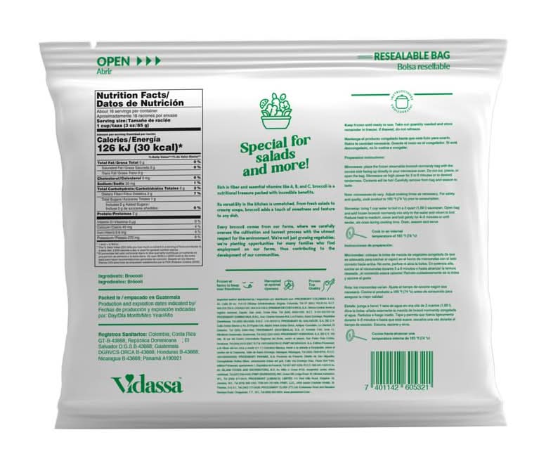 View a store’s business hours to see if it will be open late or around the time you’d like to order Vidassa Floretes de brócolis congelados.