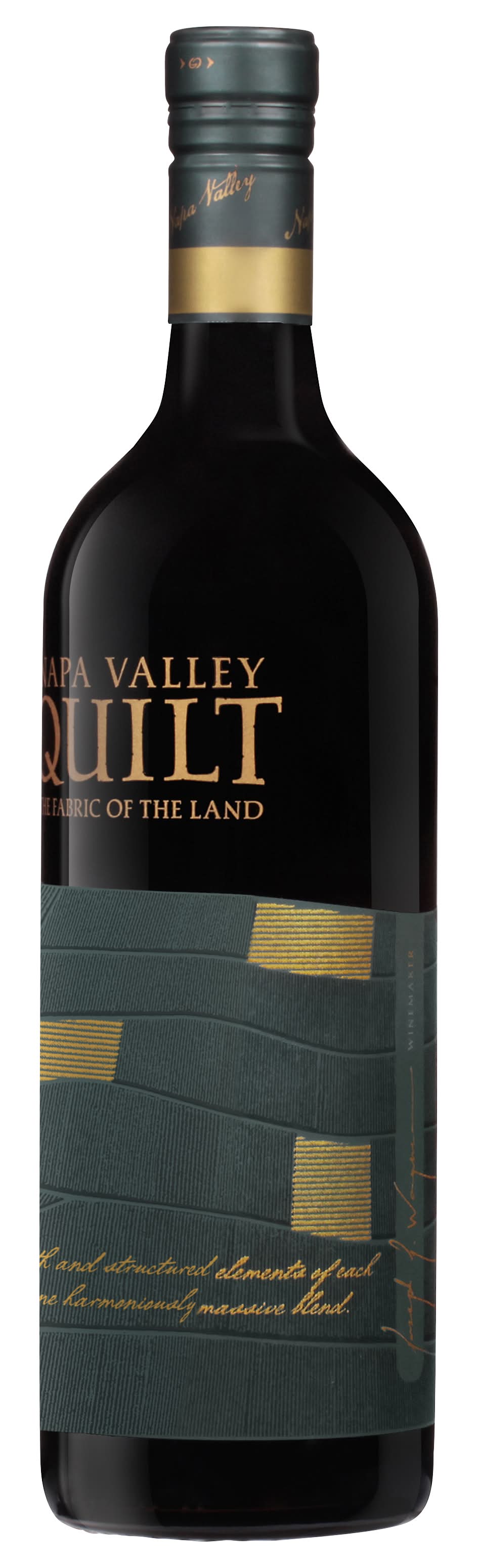The fabric of the land. Weaving the smooth and structured elements of each varietal into one harmoniously massive blend. • Alcohol by volume: 15.1% • Quilt Wines,