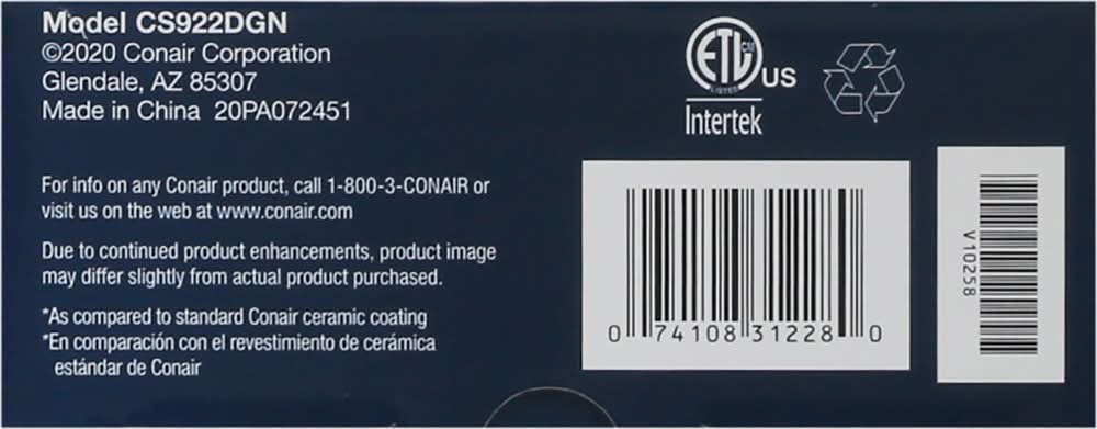 • Color: White • Size: 1 1/2 in • Conair Corporation, Glendale, AZ, 85307, Ph: 800-3-CONAIR • Packaging: Reusable