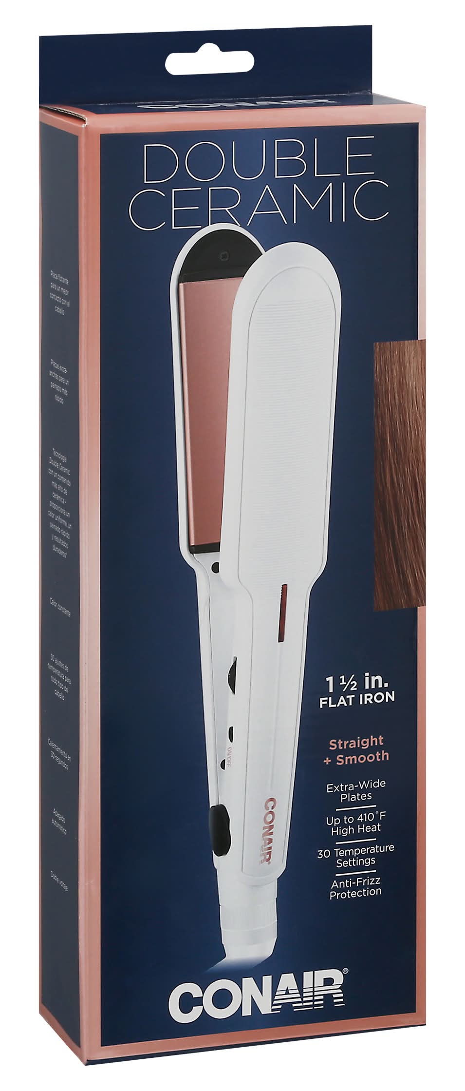 Conair Double Ceramic Flat Iron, 1 1/2 in, White