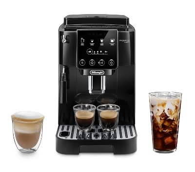 The Magnifica Start is designed for both simplicity and creativity to craft all your favorite coffee drinks at home. This one-touch automatic coffee & espresso machine features an easy to navigate design, making it the perfect machine for both beginners and aficionados. Easily craft all your favorite drinks at home including: lattes, iced lattes, iced coffee, iced macchiatos, and seasonal favorites like pumpkin spice lattes, peppermint mochas, and espresso martinis. The integrated grinder and brewing unit deliver the freshest espresso with a perfect grind, dose, tamp and brew every time, removing the guesswork and the mess. The one-touch display panel makes it easy to brew your favorite coffee drinks right at home. Easily froth milk and milk alternatives to craft your favorite drinks such as lattes, cappuccinos, and more. Clean up is simple thanks to our detachable, dishwasher-safe parts. The compact design and sleek interface make this the perfect machine for any space. Brew up your favorites or explore endless possibilities with Magnifica Start. Color: Black
