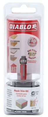 The Diablo 3/8 in. x 1/2 in. Carbide Flush Trimming Router Bit has a bottom bearing that travels along the edge of a template to guide your tool down an identical cutting path. Ideal for making copies of a master workpiece, it provides a controlled, splinter-free trim on all types of wood and laminates. The high-density carbide and titanium composition stands up to repeated use and is designed to produce clean, safe cuts every time. Size: 3/8x1/2 in