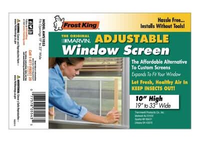 This Thermwell Products 19 - 33 in. x 10 in. Wood Frame Adjustable Window Screen expands to fit your window and installs without tools. The frame helps keep out insects and lets breezes through. It is fast and easy to install and remove so that you can use on a cool day and remove when needed. Size: 19 - 33 In X 10 In