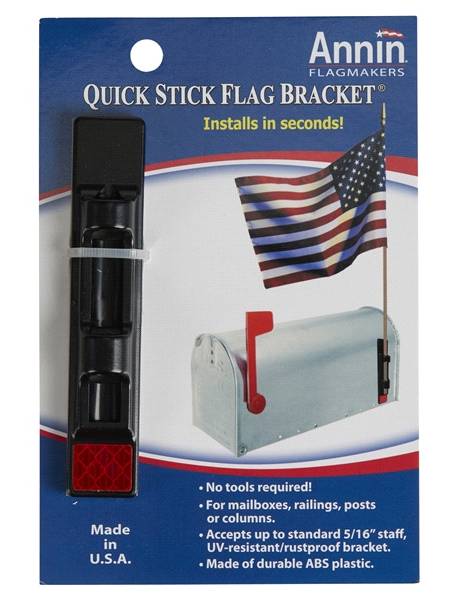 The Annin Quick Stick Flag Bracket is crafted from durable ABS plastic and is designed for easy installation without the need for tools. Its versatile design allows for mounting on various surfaces including mailboxes, railings, posts, and columns. The quick installation process can be completed in mere seconds, providing a convenient solution for flag display.