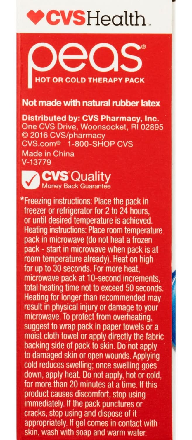 Your CVS Health Peas Hot or Cold Therapy pack delivery options may vary depending on where you are in a city. Enter your address to browse CVS Health Peas Hot or Cold Therapy pack delivery options near you.