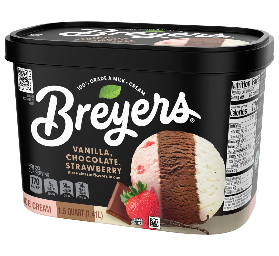 Breyers Gluten Free Ice Cream, Vanilla Chocolate Strawberry (1.5 qt)