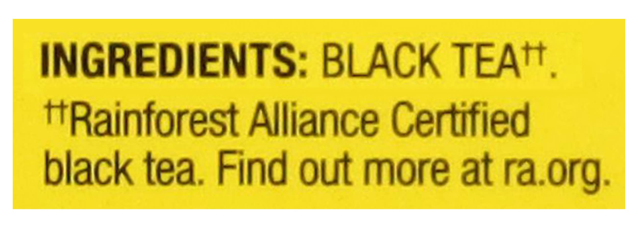 Ingredients: Black Tea(a). (a)Rainforest Alliance Certified Black Tea. Find Out More at ra.org