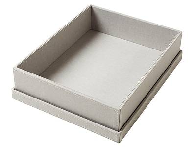 This Martha Stewart document box will help organize your workspace more efficiently. The linen box adds an elegant accent to any room space and yet is unremarkable when needed. With an included lid all your items are stored closed and kept away from curious eyes. - Document box is great for storage and desktop organization - Linen box comes in gray - Dimensions: 3.15H x 12.75W x 10.25D - Comes with an included lid for safe storage or carrying - Stacks easily