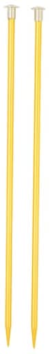 Designed for flat knitting with concave points to help prevent dropped stitches and splitting yarn. Available in multiple sizes. Anodized aluminum. Size: 10 in