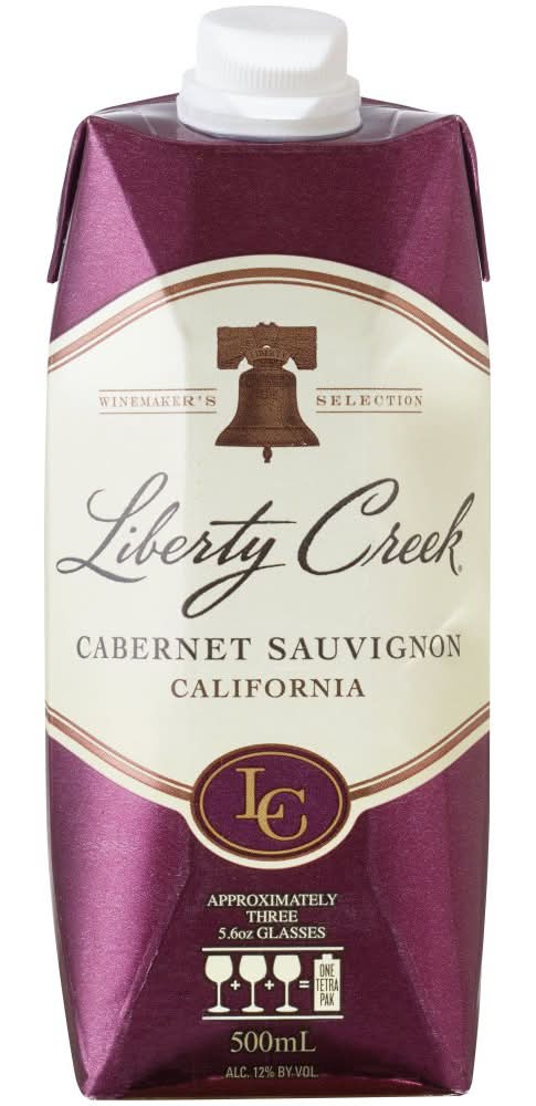Liberty Creek Vineyards Cabernet Sauvignon Red Wine delivers deep, rich notes of delicious ripe cherries and red fruits with a hint of plum and spice. This bold California red wine pairs perfectly with hearty meats and rich dishes. This perfectly portable wine with an easy-to-open screw cap is ideal for outdoors, including picnics, poolside parties or camping excursions. This full bodied red Cabernet Sauvignon wine with a long finish is best served at room temperature or slightly chilled. This smaller 500 mL package holds about three glasses of wine, so it's perfect when you don't want to open a full bottle. Liberty Creek wine is great tasting, everyday American made wine. • Brand: Liberty creek • Alcohol by volume: 12%