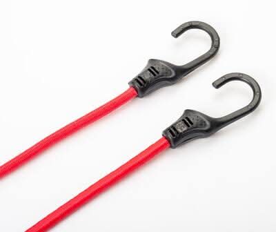 These 24 in. Super Duty Bungee Cords (4-Pack) feature an easy, finger-grip hook design. The hook is made of rust-resistant steel that is coated with hard plastic to protect surfaces from mars and scratches. The core of each cord is made of high-grade, all-natural latex rubber that maintains its elasticity and strength. The braid jacket covering the rubber core is made of premium polyethylene, a weather-resistant material.