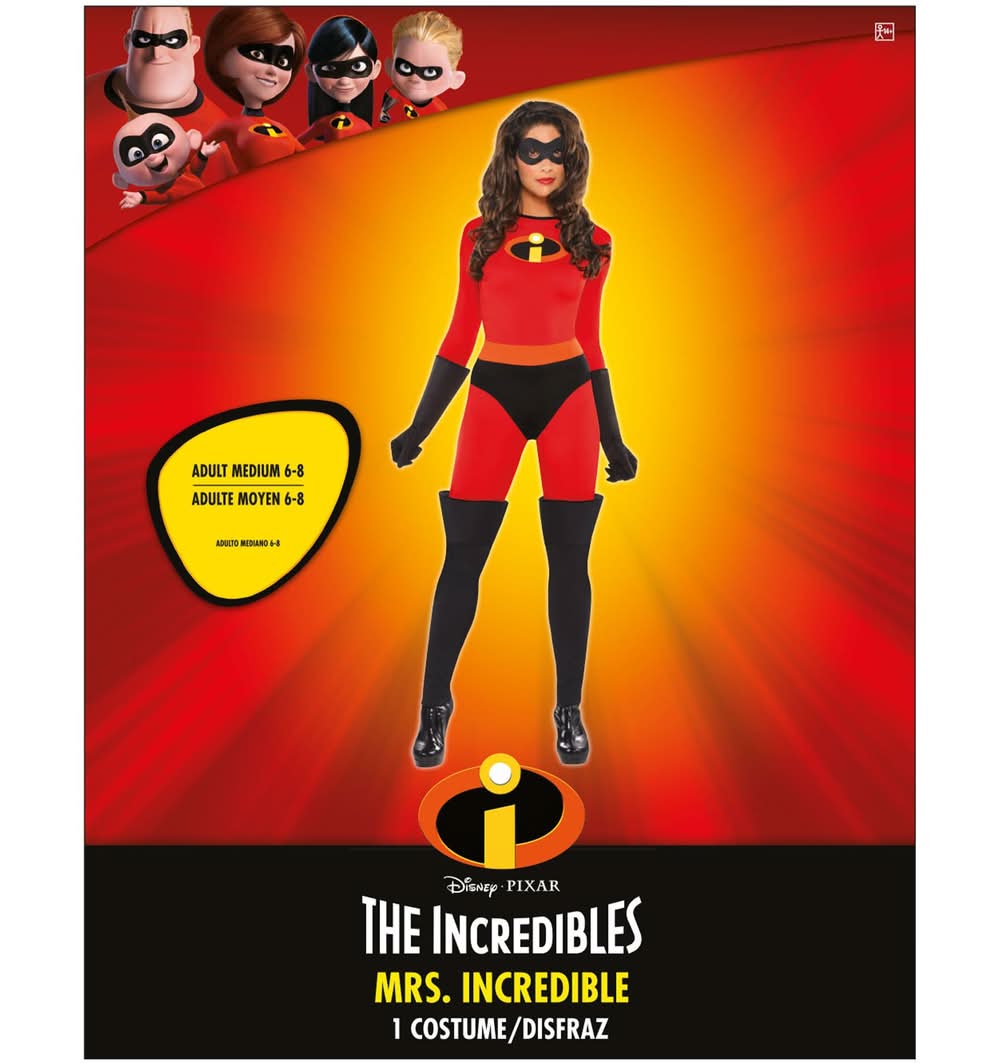 Our Mrs. Incredible Costume is ready for any mission. Featuring a red and black stretchy jumpsuit printed with the signature I emblem costume has you looking like your favorite Pixar heroine! Top off your superhero look with the black gloves face mask and attached boot covers. True to Edna's design there is no cape Jumpsuit Mask Gloves Hand wash cold line dry. Officially licensed copy; Disney-Pixar The costume. The Incredibles Costume Includes Jumpsuit, Gloves & Mask - Costumes for Halloween, Birthday Parties & Themed Event