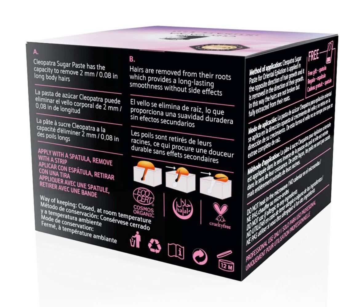 INTIMATE – EPIL Sugar Paste is a natural hair removal product recommended for users of all skin types and body parts and because of its extremely gentle, soft and semi-fluid texture, it is especially recommended for waxing intimate body parts. INTIMATE – EPIL Sugar Paste does not support manual removal but it is applied with a spatula and removed with a strip. Due to its cold and rapid usage, it is often called “healing sugar wax”. Cleopatra's award winning formula consisting of the unique composition of sugar and herbal ingredients (aloe vera gel and calendula flower) has the ability to remove 2mm long body hairs. Hairs are removed from their roots which provides a long-lasting smoothness. Cleopatra sugar paste is applied in the opposite direction of hair growth and removed in the direction of their natural growth. In this way, the hairs are not broken but fully extracted from their roots. This slows down the future hair regrowth. The application is a cold usage method; the paste does not have to be heated up. This product acts as both a hair removal and a skin care product by having the ability to nourish and hydrate the skin during treatment. The herbal ingredients have moisturizing and calming properties making the skin silky and smooth. Users can say goodbye to ingrown hairs, bumps, and razor burns while experiencing the most gentle and clean hair removal method. Packaging: Reusable