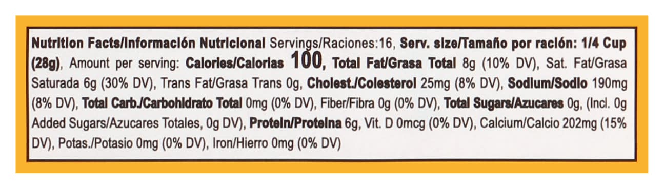 Pasteurized Milk, Cheese Cultures, Salt, Enzymes and Anticaking Agent [Potato Starch, Corn Starch, Cellulose and Natamycin (an Natural Mold Inhibitor)] Contains: Milk